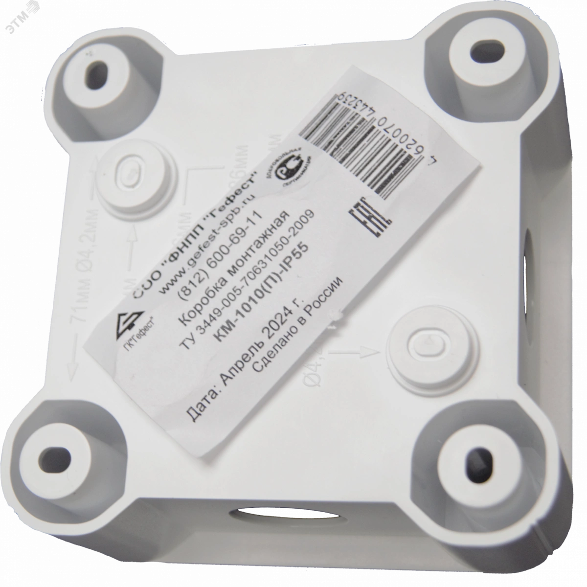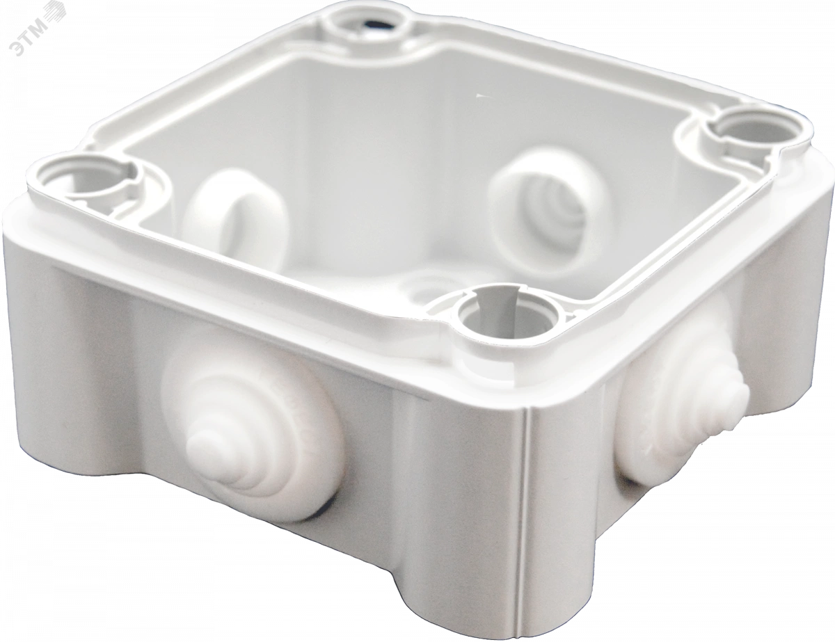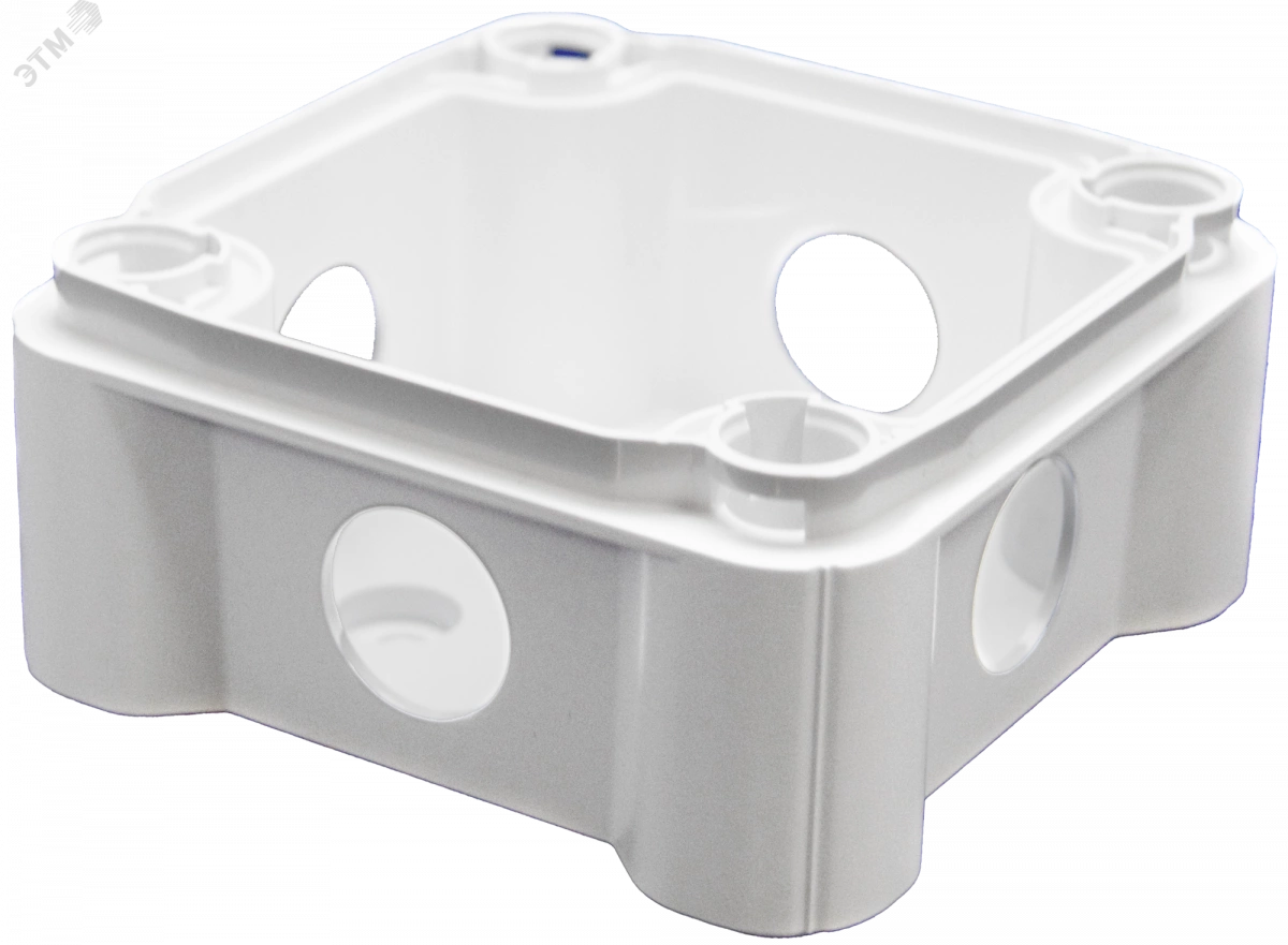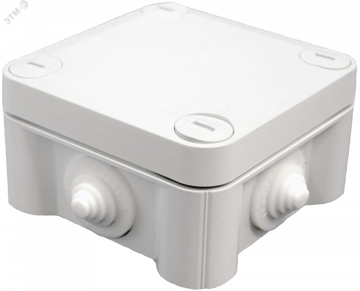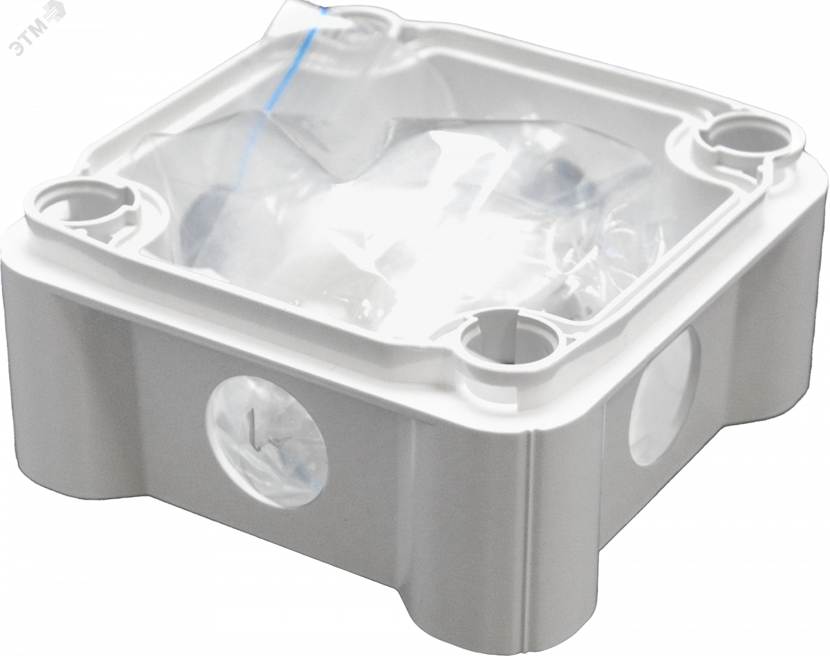 Коробка монтажная КМ(П) предназначена для коммутации электропроводки различного назначения. Применяется для монтажа внутри помещений и на открытом воздухе под навесом. Корпус коробки имеет квадратную форму и изготовлен из огнестойкого самозатухающего пластика толщиной 2 мм, устойчивого к ультрафиолетовому излучению. Герметичность коробки обеспечивается уплотнительной прокладкой, в виде замкнутого шнура круглого сечения, шайб и мембранных кабельных вводов. В стенках коробки для кабельных вводов предусмотрены отверстия диаметром 20 мм. Крепление коробки возможно как через удаляемые профили в дне коробки, так и через отверстия-колодцы, находящиеся по углам коробки вне зоны герметизируемого пространства. В комплекте поставки идут мемебранные кабельные вводы.
