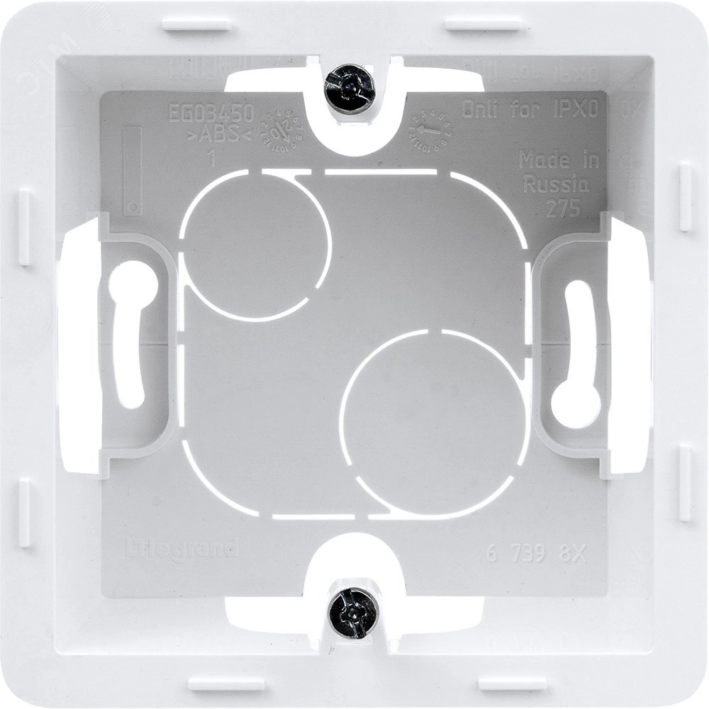 Коробка для накладного монтажа Legrand Inspiria, 1 пост, цвет ''Белый''. Коробка предназначена для накладного монтажа механизмов Legrand Inspiria. Коробка позволяет установить 1 механизм из коллекции Inspiria. Конструкция коробки позволяет подключить провода наиболее удобным способом. Особенности изделия - предназначена для накладного монтажа 1 механизма серии Legrand Inspiria. C помощью накладных коробок сохраняется дизайн электроустановочных изделий в тех зонах, где необходим накладной монтаж. Удобные отверстия и перфорация для легкого подвода проводов с помощью мини-канала или мини-плинтуса, гофротрубы или непосредственно вводом из стены. Универсальная установка. Установку необходимо дополнить декоративной 1-постовой рамкой соответствующего цвета.