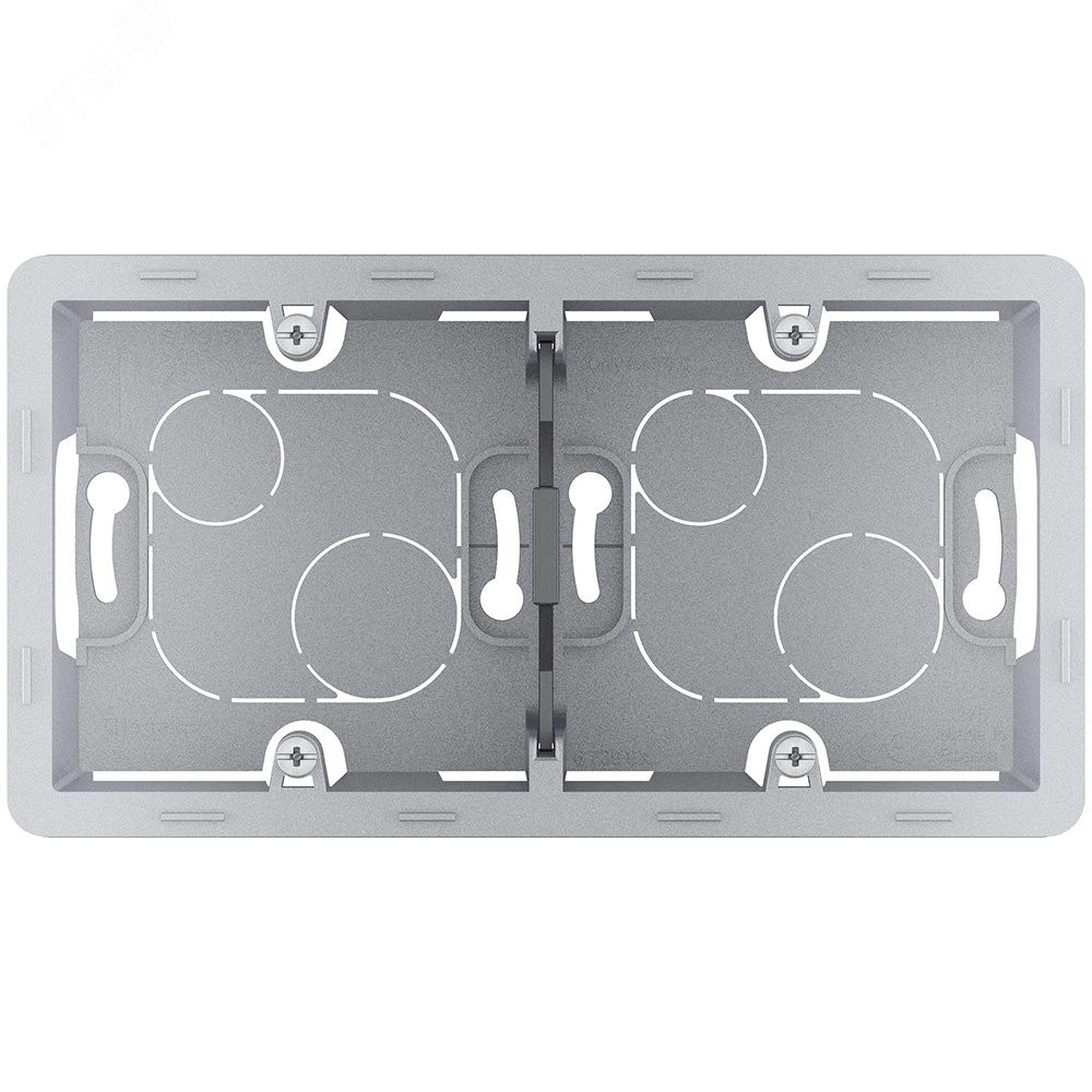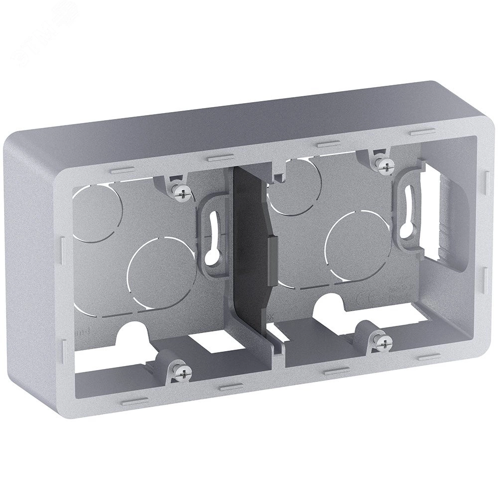 Коробка для накладного монтажа Legrand Inspiria, 2 поста, цвет ''Алюминий''. Коробка предназначена для накладного монтажа механизмов Legrand Inspiria. Коробка позволяет установить 2 механизма из коллекции Inspiria. Конструкция коробки позволяет подключить провода наиболее удобным способом. Особенности изделия - предназначена для накладного монтажа 2-х механизмов серии Legrand Inspiria. C помощью накладных коробок сохраняется дизайн электроустановочных изделий в тех зонах, где необходим накладной монтаж. Удобные отверстия и перфорация для легкого подвода проводов с помощью мини-канала или мини-плинтуса, гофротрубы или непосредственно вводом из стены. Универсальная - горизонтальная или вертикальная - установка. 2-постовая коробка оборудована гибкой сьемной перегородкой для правильной организации кабеля в коробке и ограничения помех. Установку необходимо дополнить декоративной 2-постовой рамкой соответствующего цвета.