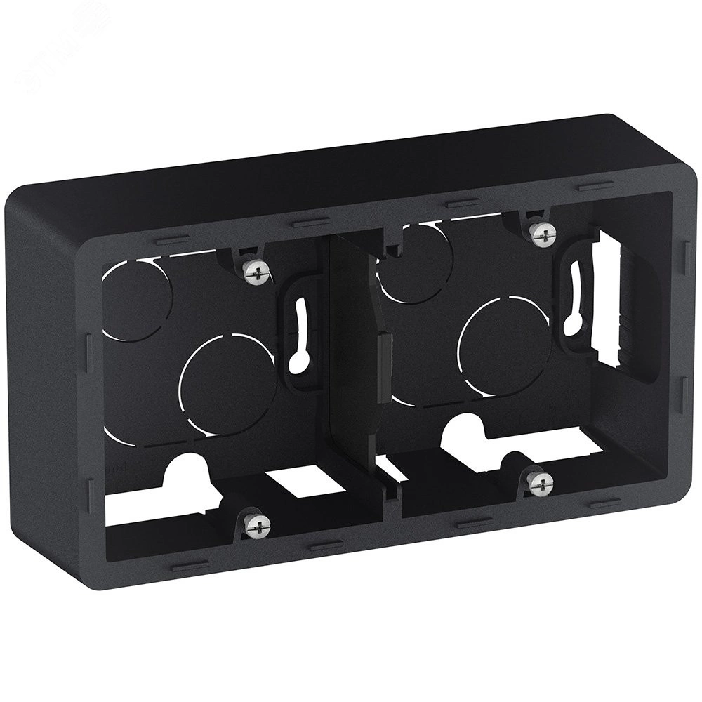 Коробка для накладного монтажа Legrand Inspiria, 2 поста, цвет ''Антрацит''. Коробка предназначена для накладного монтажа механизмов Legrand Inspiria. Коробка позволяет установить 2 механизма из коллекции Inspiria. Конструкция коробки позволяет подключить провода наиболее удобным способом. Особенности изделия - предназначена для накладного монтажа 2-х механизмов серии Legrand Inspiria. C помощью накладных коробок сохраняется дизайн электроустановочных изделий в тех зонах, где необходим накладной монтаж. Удобные отверстия и перфорация для легкого подвода проводов с помощью мини-канала или мини-плинтуса, гофротрубы или непосредственно вводом из стены. Универсальная - горизонтальная или вертикальная - установка. 2-постовая коробка оборудована гибкой сьемной перегородкой для правильной организации кабеля в коробке и ограничения помех. Установку необходимо дополнить декоративной 2-постовой рамкой соответствующего цвета.