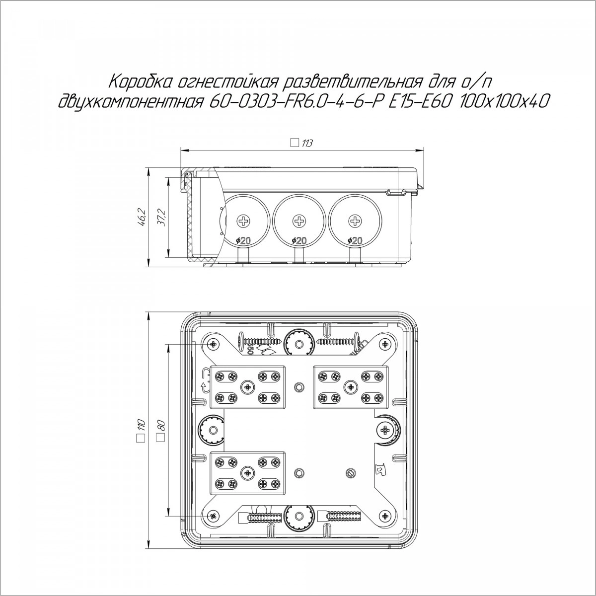 Коробка огнестойкая разветвительная для о/п двухкомпонентная 60-0303-FR6.0-4-6-Р Е15-Е60 100х100х40 RAL2004 Промрукав (17 шт/уп)