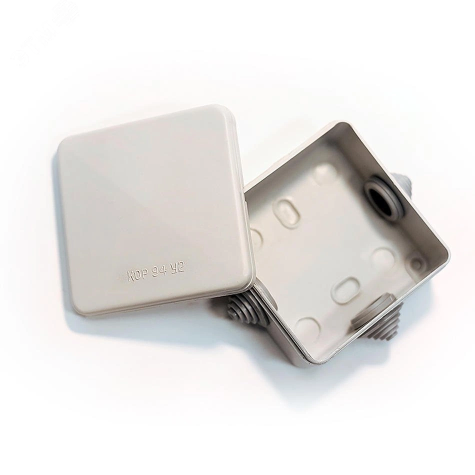 Коробка ответвительная КОР94-3М У2 Г предназначена для ответвлений и соединений в электрических сетях переменного и постоянного тока напряжением до 500 В, выполняемых кабелями с алюминиевыми и медными жилами с пластмассовой и резиновой изоляцией для открытой прокладки. Диаметр вводимых кабелей 7, 11.4, 15.4 мм.кв. Коробка состоит из корпуса и крышки. Корпус имеет 3 отверстия для ввода кабеля. Для уплотнения при вводах кабеля устанавливаются ступенчатые заглушки Р16.03.