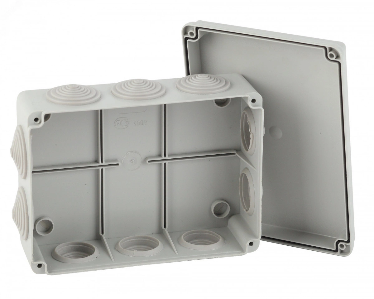 Коробка распаячная открытой установки КОРv 190х140х70мм на винтах 10 гермовводов IP55 (20/360)