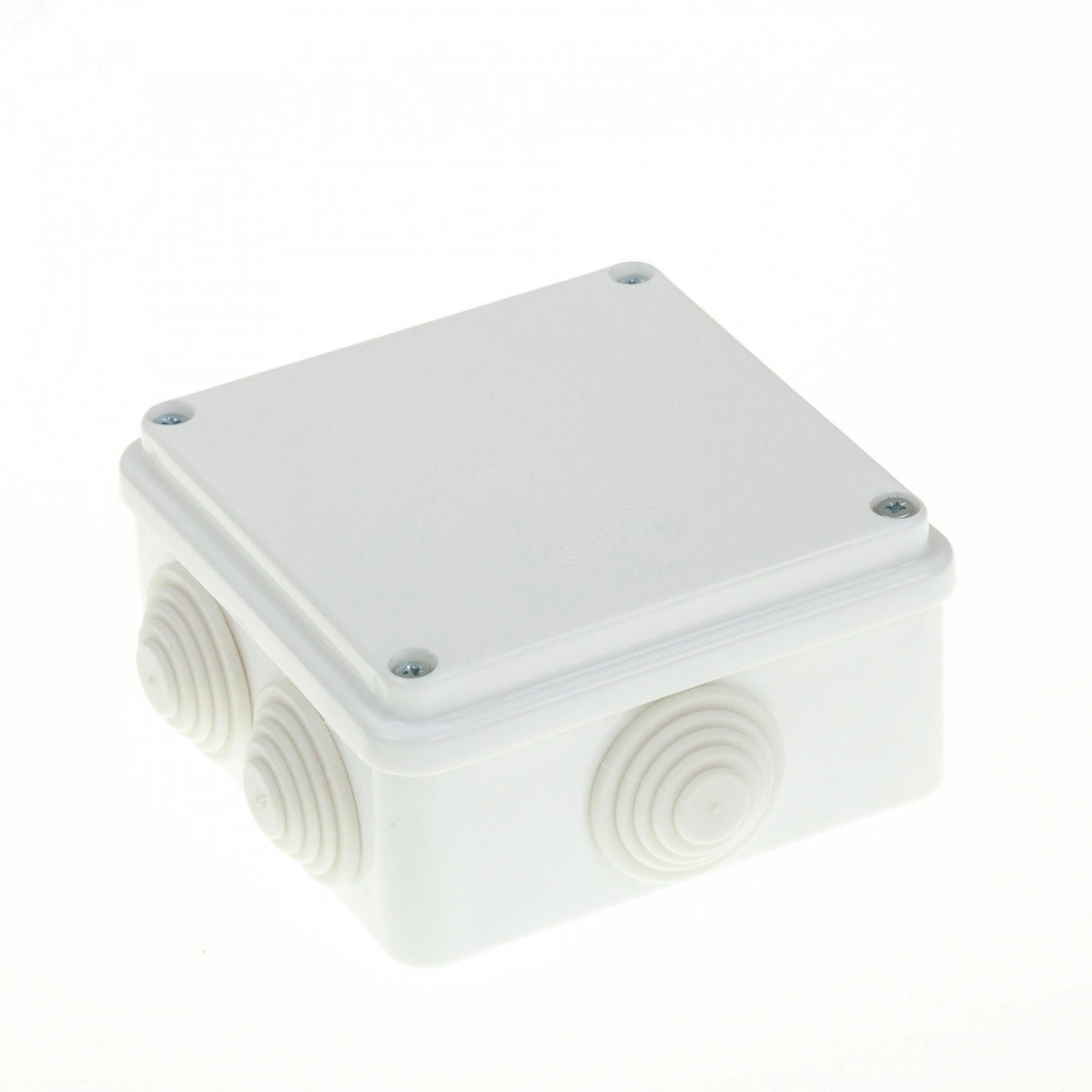Полное описание: Коробка распределительная 100?100?50 (6 муфт д32), крышка на винтах, IP55, ОП, AБC пластик белый