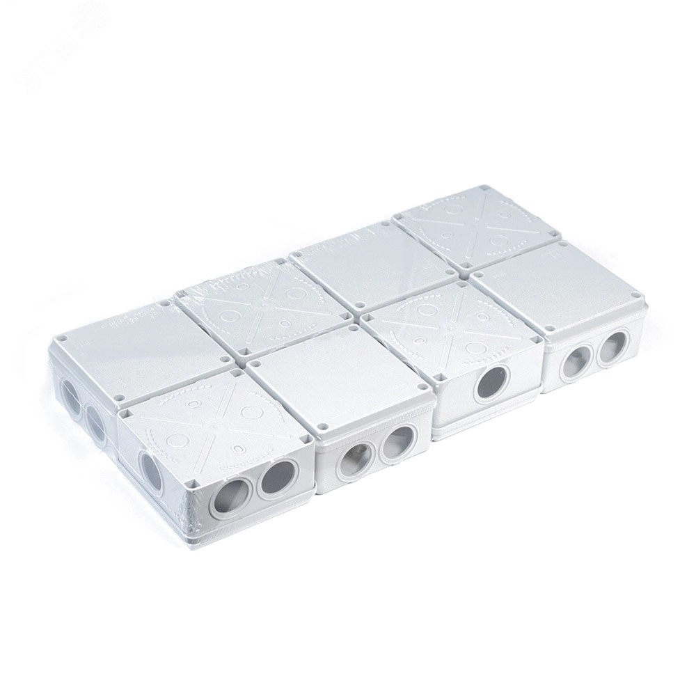 Распаячные (распределительные) коробки применяются для защиты мест соединения проводов и кабелей от механических повреждений, от проникновения пыли и влаги, а лаконичный дизайн способствуют эстетичному монтажу проводки. Коробки имеют высокую стойкость к воспламенению. Подходят для использования в закрытых помещениях. Материал изготовления коробок является безгалогенным, что позволяет использовать изделие в общественных местах, с высоким скоплением людей. Для удобства в ассортименте теперь появилась малая упаковка, состоящая из 8 штук изделий.