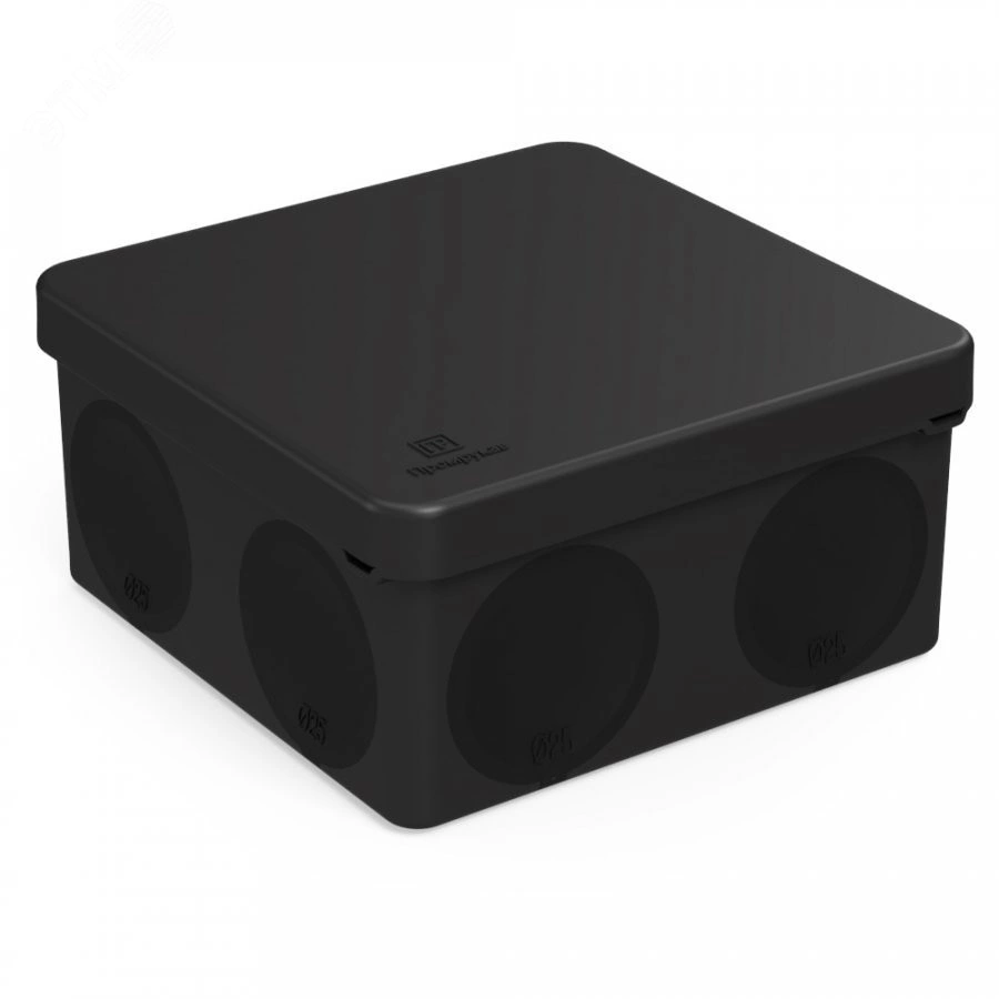 Коробка распределительная 60-0300-9005м для прямого монтажа двухкомпонентная безгалогенная (HF) черная 100х100х50 (8шт/уп) Промрукав