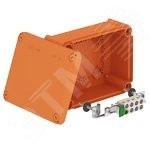 Не содержащая галогенов огнестойкая распределительная коробка. Классы огнестойкости до E90. Цвет: оранжевый. В комплекте с установленным блоком подключения из специального керамического материала, устойчивого к воздействию высоких температур, и маркированной защитной клеммой.Сертификат пожарной безопасности ГОСТ 53310-2009. Коробка поставляется с огнестойкими винтовыми анкерами для крепления без дюбелей. Поперечное сечение силового кабеля: до 10 мм.кв. Возможно крепление нескольких жестких медных жил меньшего поперечного сечения на клемму. Высокий класс защиты IP65, класс ударной прочности IK07.