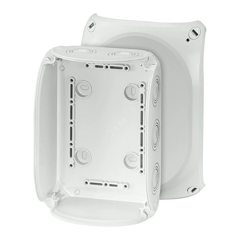 Всепогодная' коробка из высококачественного поликарбоната устойчивого к ультрафиолету и арессивным средам, высокая ударная прочность IK09 (10 Дж), степень защиты IP66/IP67/IP69, широкий температурный диапазон от -25 до +70, испытание нитью накала 960 градусов по стандарту UL94: V-0 (трудновоспламеняющаяся, самозатухающая), не содержит галогенов и силикона, пломбируемая, крепление как сквозь основание, так и при помощи петель внешнего крепления, входящих в комплект поставки. Преднамеченные выбиваемые метрические отверстия, возможность ввода кабеля через основание, возможность установки клемм или ДИН-рейки. Инновационный дизайн, высокие эксплуатационные характеристики, долговечность. Для незащищенной установке на улице, для применения на предприятиях с агрессивными средами, а так же в животноводческих комплексах и на инфраструктурных объектах, где требуется надежное энергоснабжение.