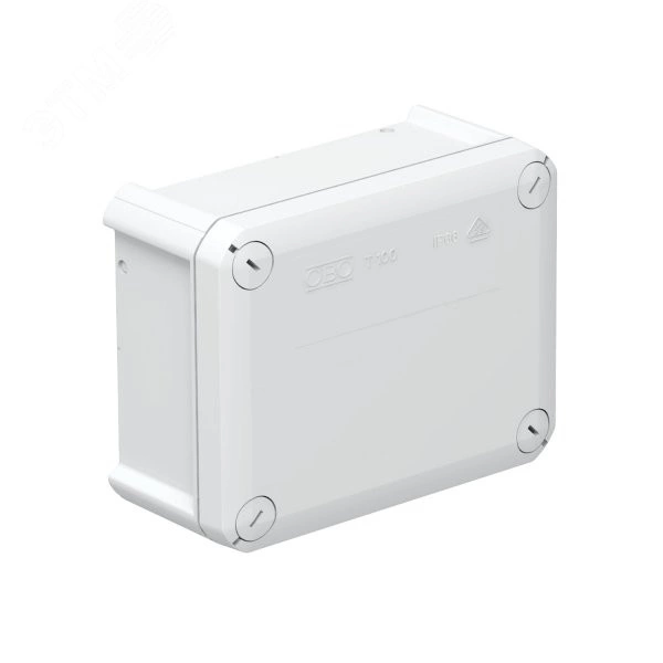 Кабельная распределительная коробка для соединения кабелей и проводов в помещении и в защищенных зонах вне помещения. Прямоугольная форма без вводов. Подходит для настенного и потолочного монтажа и установки на монтажных пластинах. С возможностью для внутреннего закрепления и монтажом поверх угловых колпаков. Крышка с быстроразъемным соединением может быть опломбирована. Изготовлено из материалов, не содержащих галогены. Кабельная распределительная коробка согласно DIN EN 60670. Огнестойкость согласно DIN EN 60695-2-11, температура испытания 650°C. Ударопрочность IK07 согласно DIN EN 50102.