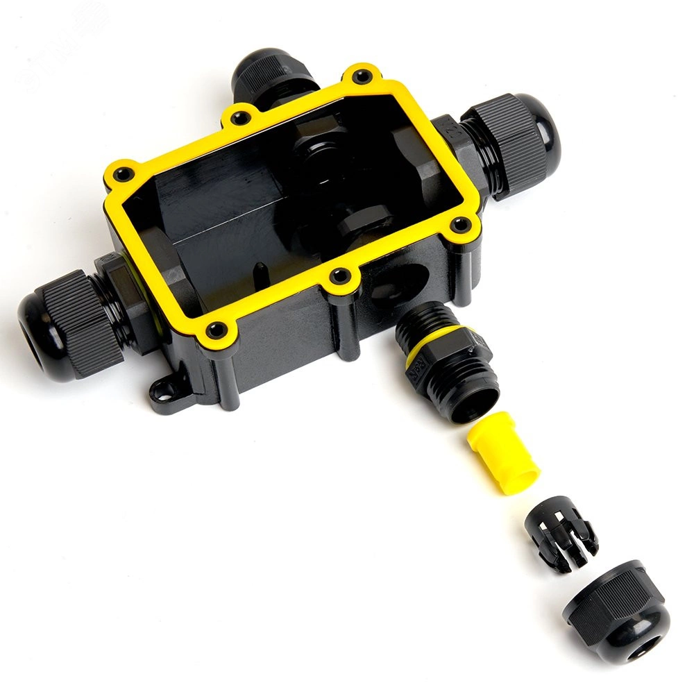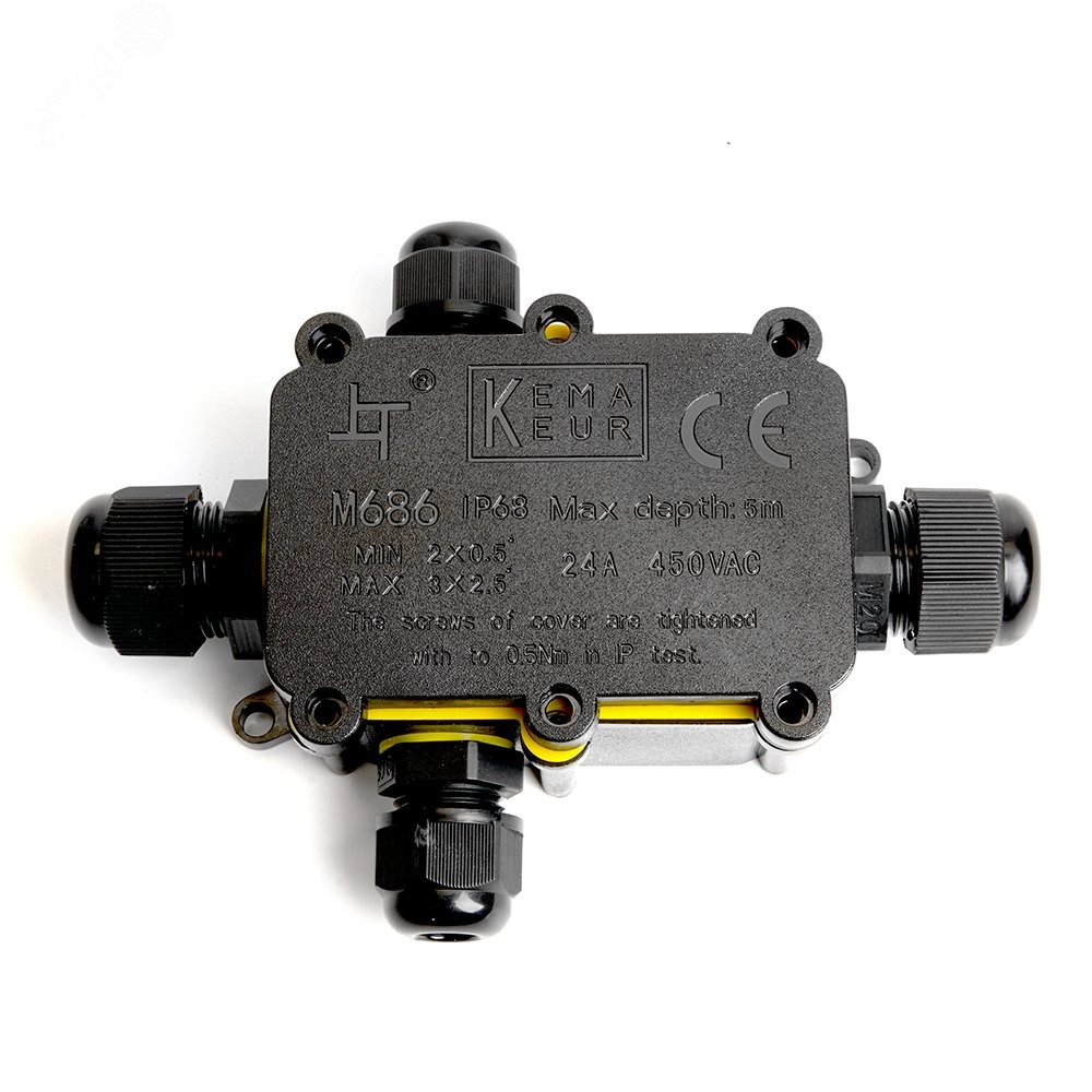 Влагозащищенная соединительная коробка LD524 поставляется в комплекте с клеммной колодкой ЗВИ. Предназначена для соединения и распределения электрических проводников с номинальным напряжением переменного тока до 450 В. Высокая степень защиты IP68 позволяет использовать соединительную коробку в условиях высокого содержания пыли и влаги, как внутри, так и снаружи помещений, применяется для уличного и подводного монтажа. Возможно погружение в воду до 4 метров, не более 72 часов, при условии напряжения не выше 24V. Материал присоединяемого проводника - медь, алюминий.