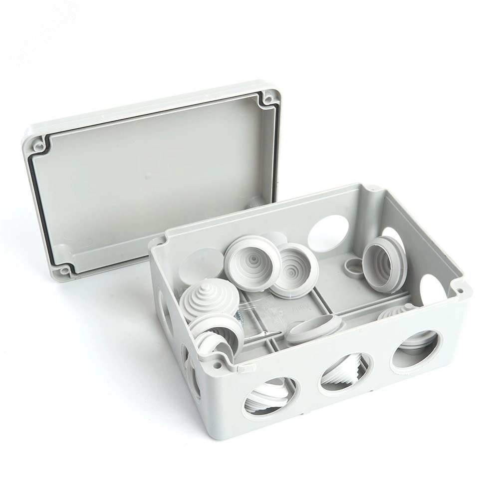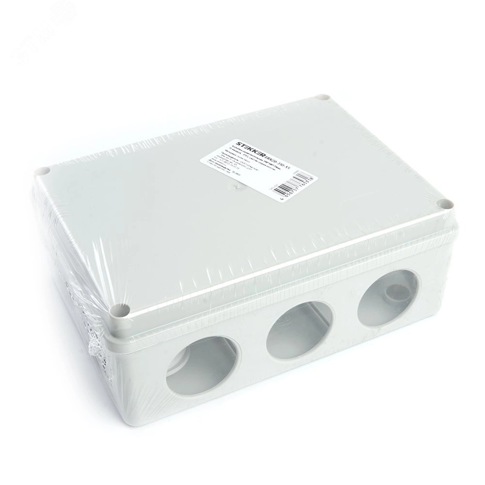 Разветвительная коробка STEKKER EBX20-310-55, количество вводов: 10, пластик, цвет светло-серый, размер 190*140*70мм. со степенью защиты IP 55. Разветвительная коробка STEKKER предназначена для изолирования точек отвода электропроводов, электрокабеля сетей освещения и энергосиловых сетей, напряжением до 1000В переменного и постоянного тока, а также кабелей информационных сетей (телефонных, компьютерных, сетей связи и пр.) Коробки используются при открытом монтаже электропроводки.