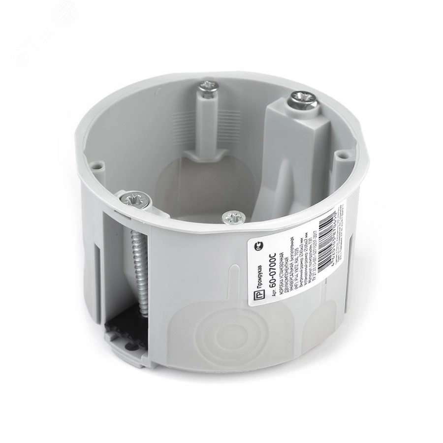 Коробка установочная 60-0700С предназначена для монтажа электрических розеток, выключателей и других электроустановочных изделий, при реализации скрытой проводки. Коробка установочная 60-0700С универсальная - подходит для всех типов стен. За счёт монолитной мембраны обеспечивается герметичный ввод (с высокой степенью защиты по IP) кабеля или кабеленесущей продукции. По необходимости, коробки установочные можно собрать в группу изделий за счёт соединителя (PR80.0203) и выполнить монтаж без снижения степени защиты по IP.