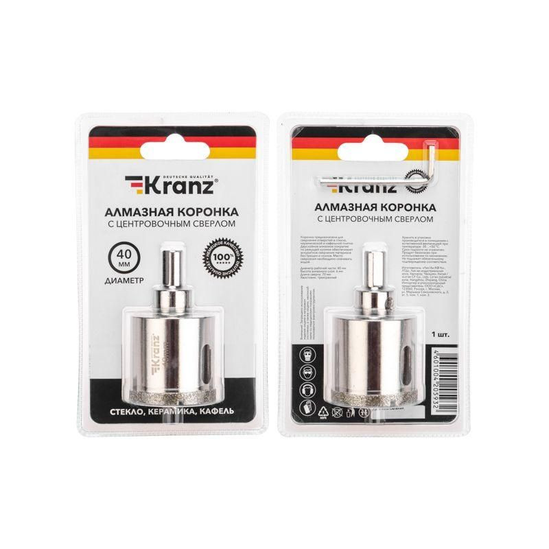 Коронка алмазная 40мм по керамограниту с центровочным сверлом Kranz KR-92-0012