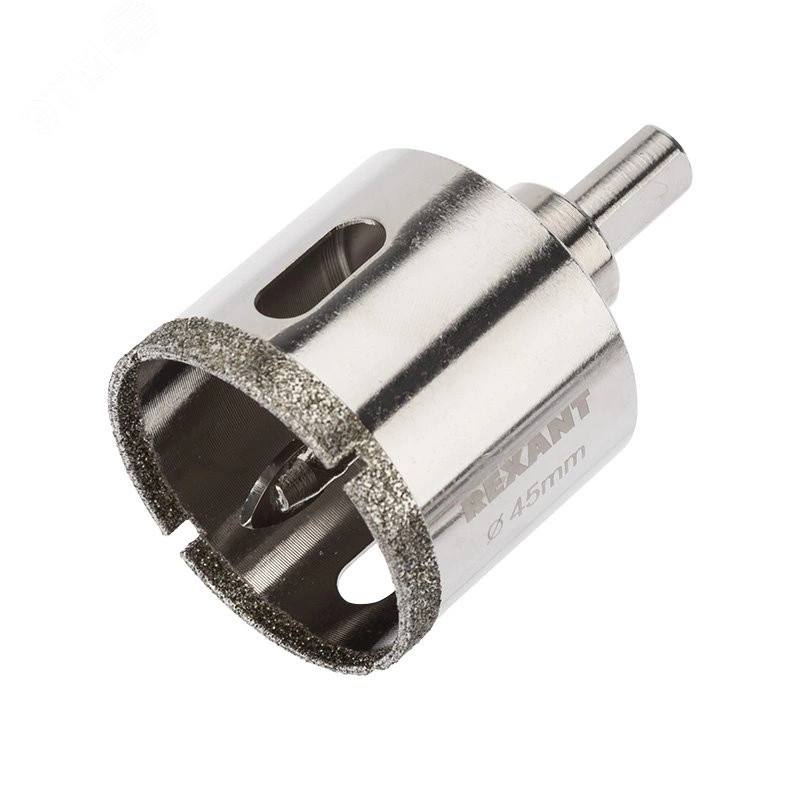 Коронка алмазная REXANT 45 мм с центровочным сверлом. Используются при сверлении керамогранита, керамики, стекла. Покрытие алмазных коронок выполнено гальваническим способом в два слоя, что обеспечивает эффективное сверление и продолжительный рабочий ресурс инструмента. При сверлении отверстий с использованием алмазных коронок все работы производятся только с охлаждением, путем подачи в рабочую зону воды.