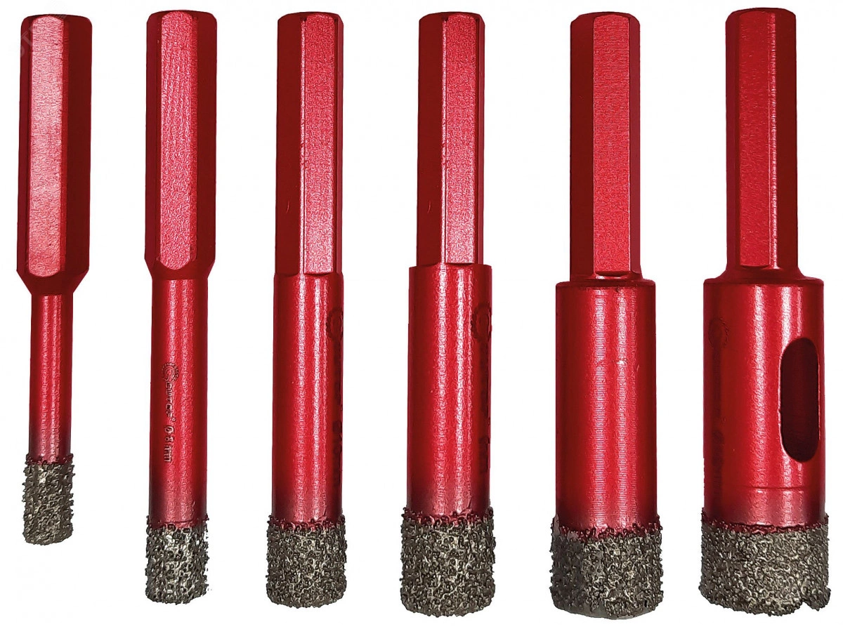 Коронка алмазная универсальная с шестигранным хвостовиком предназначена для дрели. Применяется для сухого сверления керамогранита, мрамора, шлакоблока, кирпича, плитки, стекла, дерева и т д. Внутри коронок используется специальный охлаждающий материал (воск), что значительно увеличивает ресурс. Материал: инструментальная сталь, технические алмазы, воск. Упаковка: блистер.