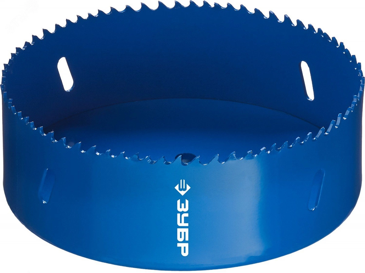 Биметаллические коронки ЗУБР обладают высоким рабочим ресурсом благодаря использованию быстрорежущей стали с повышенным содержанием кобальта и повышенной производительностью за счет переменного шага режущих зубьев