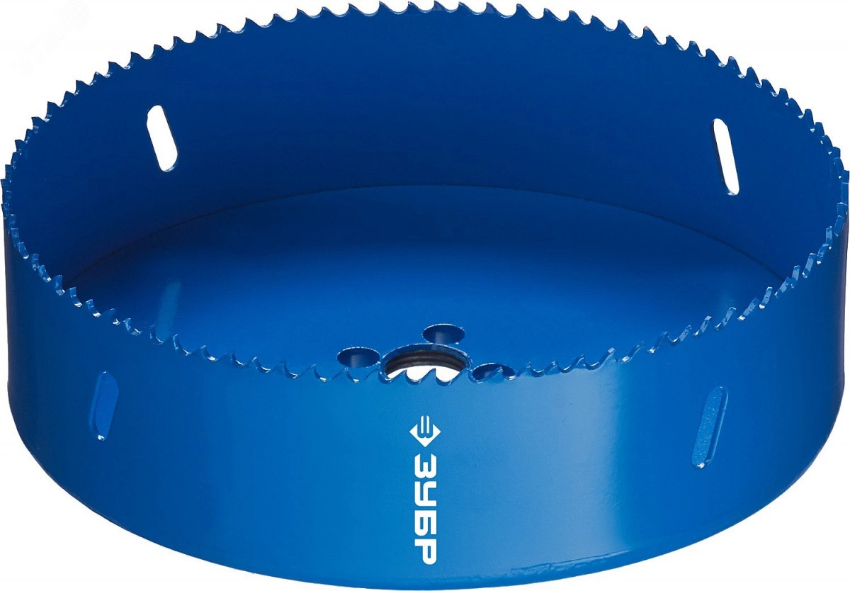 Биметаллические коронки ЗУБР обладают высоким рабочим ресурсом благодаря использованию быстрорежущей стали с повышенным содержанием кобальта и повышенной производительностью за счет переменного шага режущих зубьев