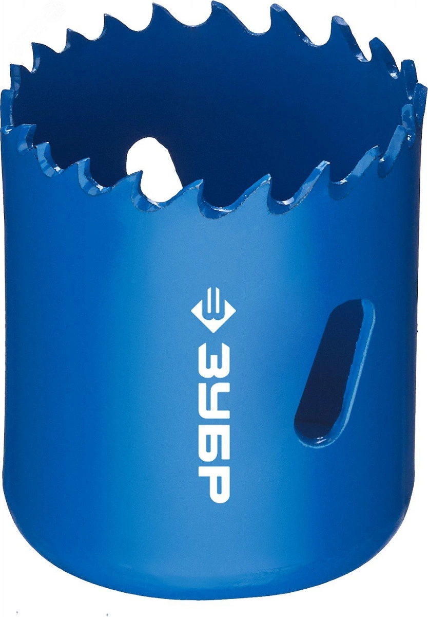 Биметаллические коронки ЗУБР обладают высоким рабочим ресурсом благодаря использованию быстрорежущей стали с повышенным содержанием кобальта и повышенной производительностью за счет переменного шага режущих зубьев