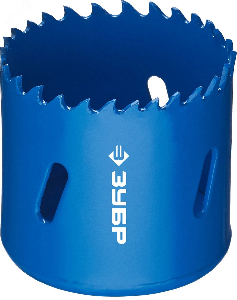 Биметаллические коронки ЗУБР обладают высоким рабочим ресурсом благодаря использованию быстрорежущей стали с повышенным содержанием кобальта и повышенной производительностью за счет переменного шага режущих зубьев