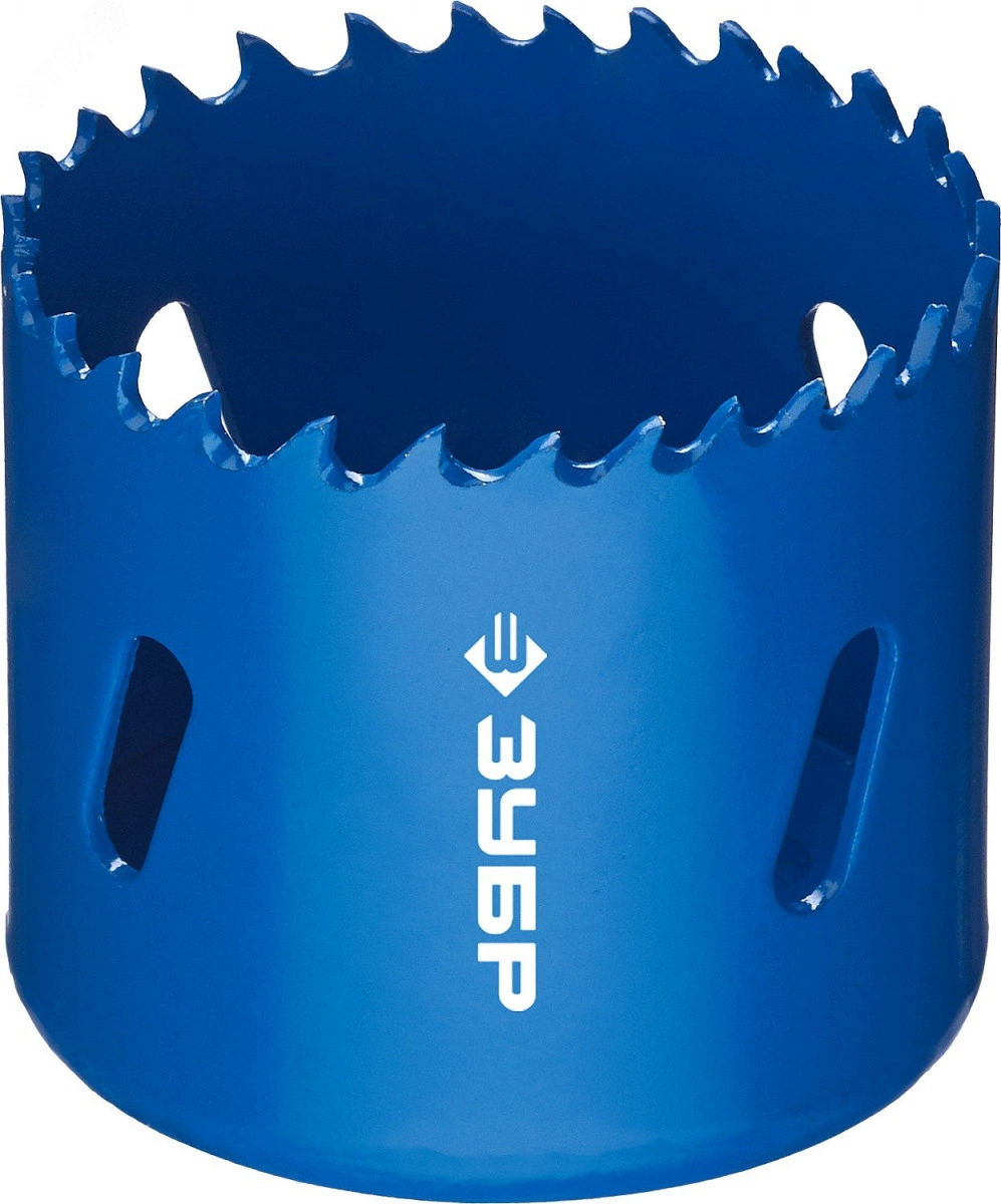 Биметаллические коронки ЗУБР обладают высоким рабочим ресурсом благодаря использованию быстрорежущей стали с повышенным содержанием кобальта и повышенной производительностью за счет переменного шага режущих зубьев