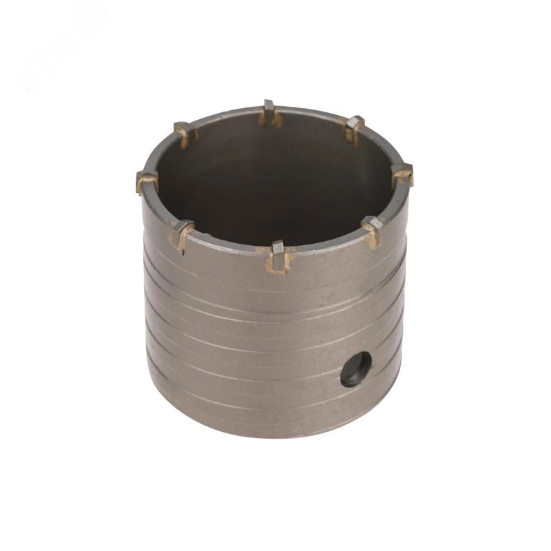 Коронка по бетону KRANZ предназначена для сверления и бурения отверстий в слабоармированном бетоне, граните, кирпиче, известняке и камне при помощи специального электроинструмента. Изделие выполнено из высококачественной углеродистой стали c твердосплавными напайками в количестве 8 штук, что обеспечивает большой ресурс работы и высокую производительность оснастки и предотвращает заклинивание бура. Соединительная резьба коронки - М22. Улучшенная форма буровой коронки способствует легкому отводу шлама и снижает нагрузку на перфоратор. Диаметр равен 68 мм, общая длина - 50 мм. Необходимый тип сверления - сухой.