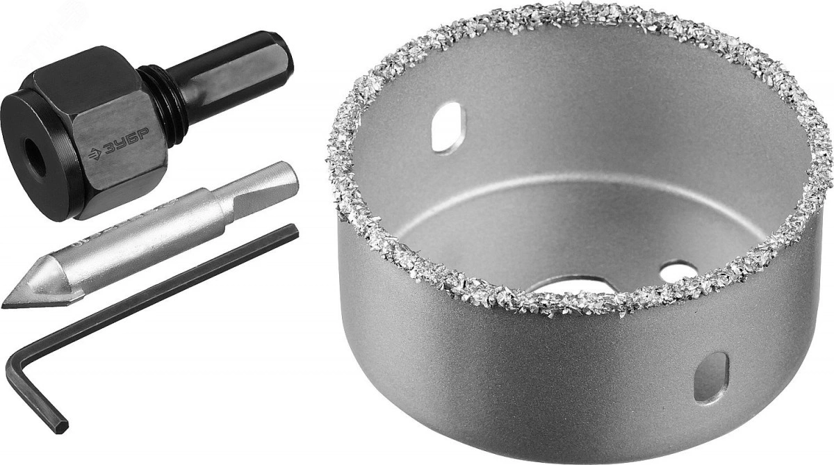 Полное описание: Коронка-чашка ''Профессионал'' c карбид-вольфрамовым нанесением, 64 мм, высота 25 мм, в сборе с державкой и сверлом