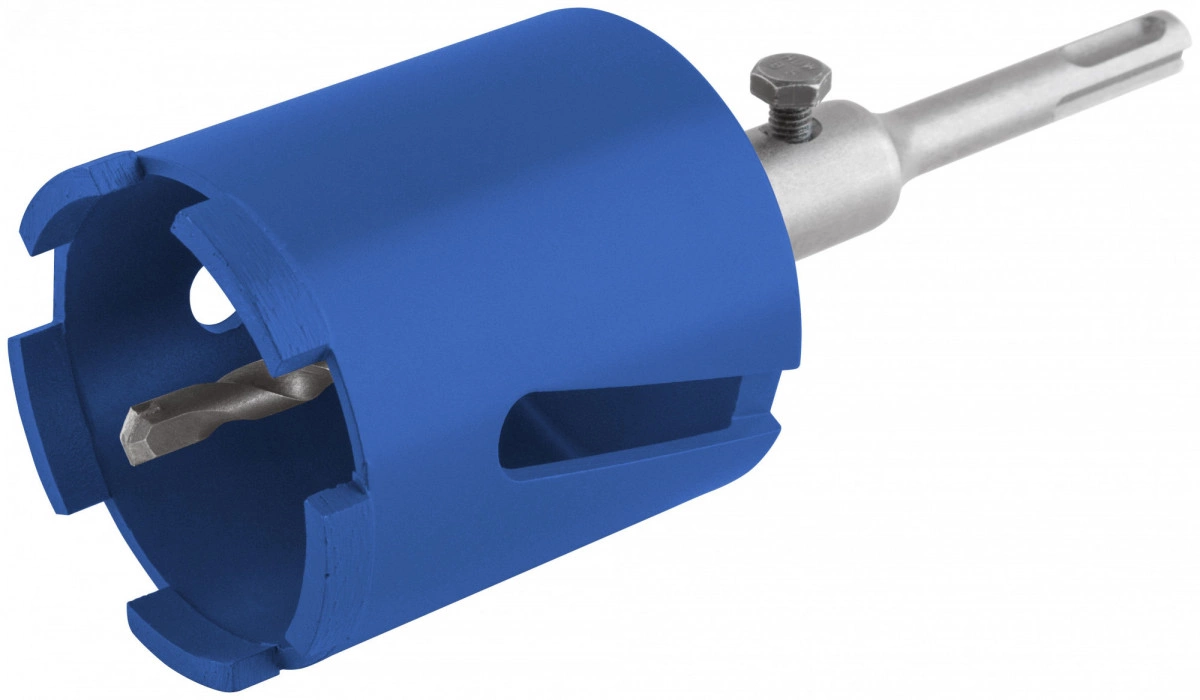 Коронка алмазная с центрирующим сверлом 8 мм и хвостовиком SDS-PLUS. Для безударного сверления отверстий под монтажные коробки в бетоне (в том числе армированном) и кирпиче. Для работы с водяным охлаждением. Материал - корпус из инструментальной стали, хвостовик и центрирующее сверло из легированной стали, наконечник сверла из карбида вольфрама, режущая кромка содержит порошок из технических алмазов. Упаковка - пластиковый подвес.