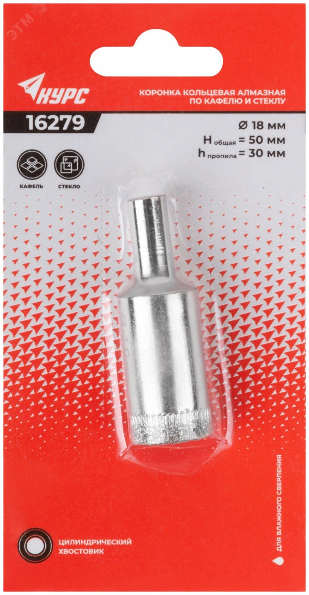 Коронка кольцевая по кафелю и стеклу алмазная 18х50 мм