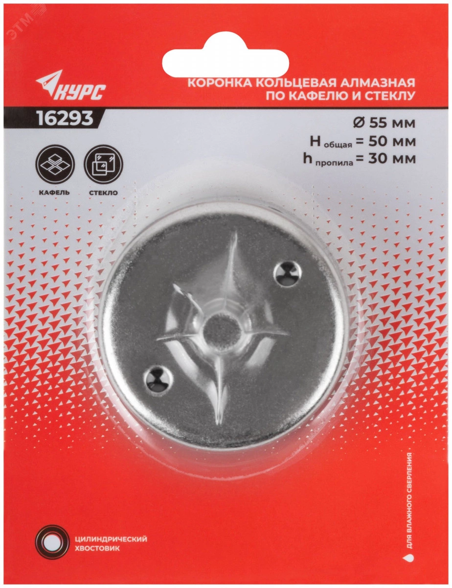 Коронка кольцевая по кафелю и стеклу алмазная 55х50 мм