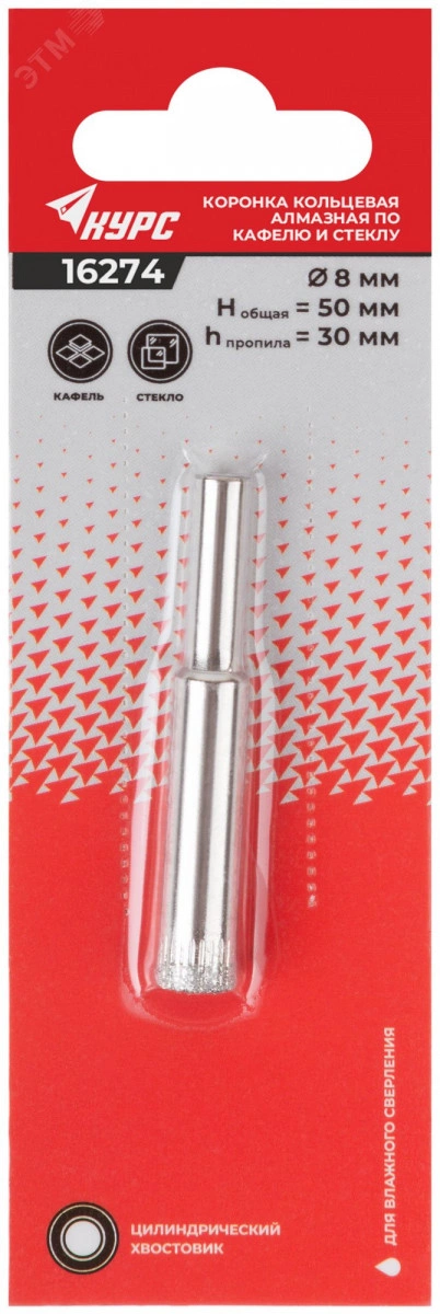 Коронка кольцевая по кафелю и стеклу алмазная 8х50 мм