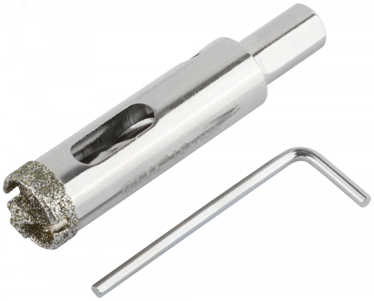 Коронка кольцевая по керамограниту, камню и кафелю алмазная с центровочным сверлом 16х67 мм