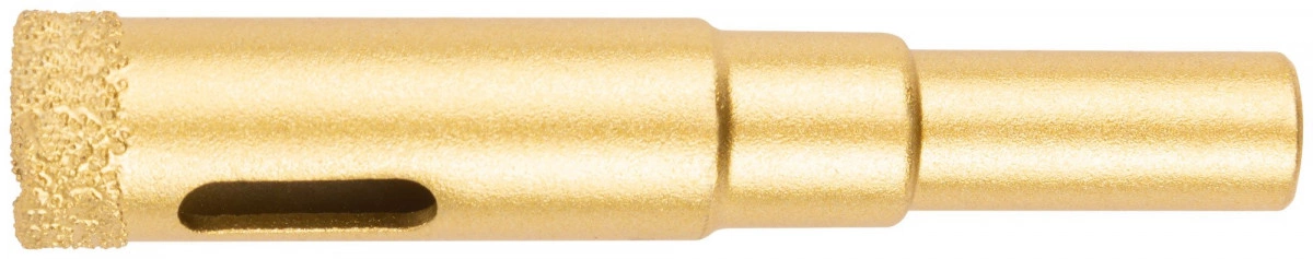 Профи. 16301-16306 - цилиндрический хвостовик, 16308-16310 - трехгранный хвостовик. Для вырезания круговых отверстий в керамограните, кафельной плитке, бетоне, граните, мраморе, камне, кирпиче и стекле. Влажное сверление. Глубина пропила 35 мм. Материал - инструментальная сталь, режущая кромка содержит порошок из технических алмазов. Упаковка - блистер.