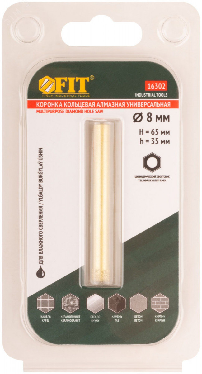 Кольцевая алмазная коронка по керамограниту FIT IT ''Профи'' предназначена для вырезания круглых отверстий в керамограните, камне, стекле, кафельной плитке. Влажное сверление. Глубина пропила — 35 мм. Высокая концентрация алмазного зерна обеспечивает износостойкость и длительный ресурс коронок. Чистый рез без сколов достигается за счет мелкого размера алмазных частиц. Отверстия в корпусе коронок способствуют эффективному охлаждению и отводу шлама. Цилиндрический хвостовик совместим с большинством патронов электроинструмента.