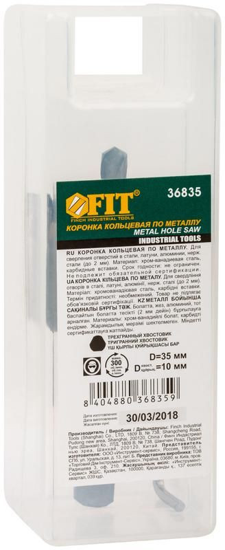 Коронка кольцевая с карбидными вставками Профи (для отверстий в нержав. стали) 35мм FIT 36835