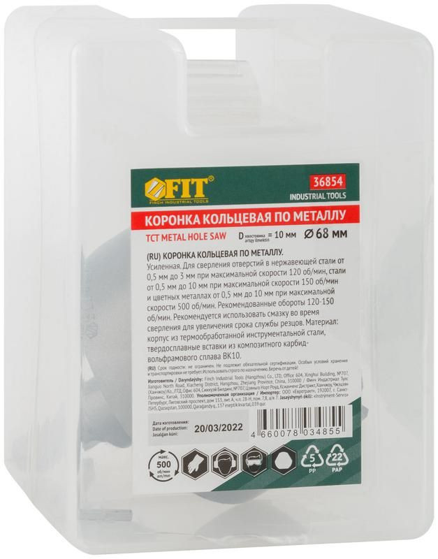 Полное описание: Коронка кольцевая с карбидными вставками Профи (для отверстий в нержав. стали) 68мм FIT 36854