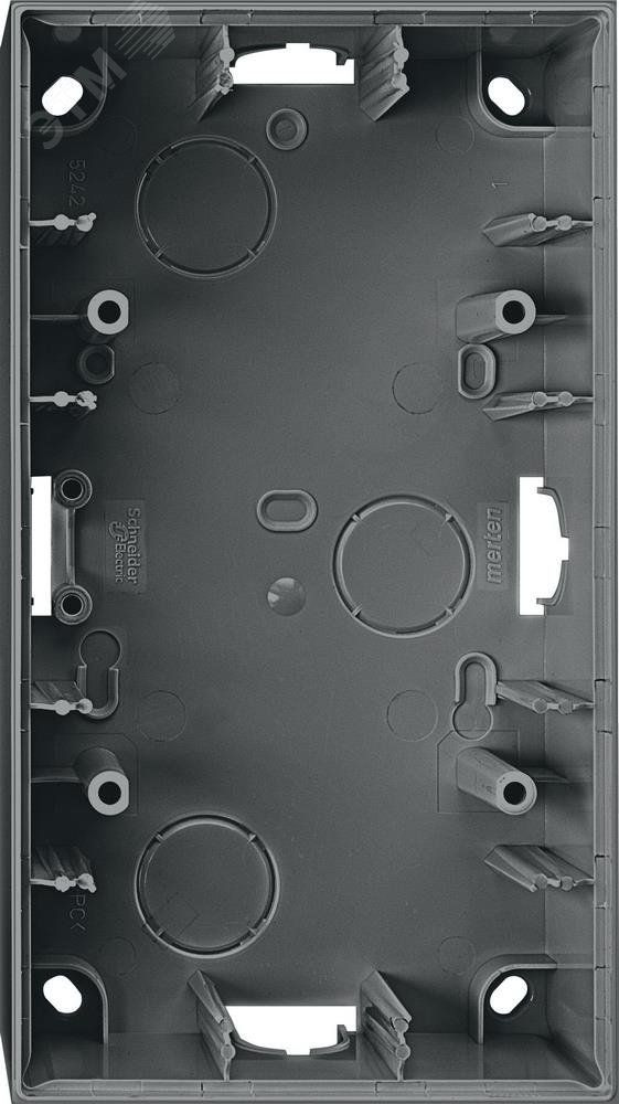 Корпус для открытого монтажА 2-местный антр. Серия продукта - Merten M-Elegance, наименование - M-Elegance. Тип устройства или его аксессуаров - корпус для монтажа на поверхности, количество постов - 2-постовая, оттенок цвета - антрацитовый, код цвета - RAL 7024.