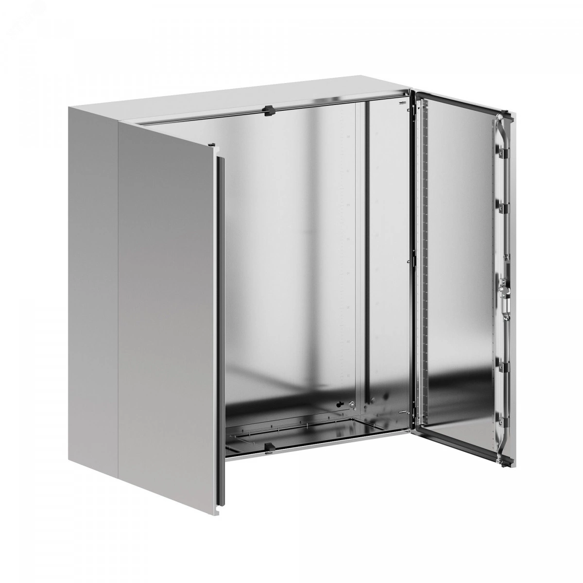 Навесные корпуса серии STH предназначены для систем автоматизации и распределения электроэнергии, эксплуатирующихся в коррозионно-активных средах - области с высокой влажностью, соляной и морской туман, химически агрессивные среды, открытые пространства с высокой концентрацией загрязняющих веществ. Корпус, дверь, фланец изготавливаются из нержавеющей стали AISI 304 (1.4301) толщиной 1,5 мм. Литой уплотнитель двери и фланца - вспененный силикон. Монтажная плата изготовлена из оцинкованной стали толщиной 2,5 мм. Степень защиты IP55, ударопрочность IK10, сейсмостойкость 9 баллов по шкале MSK-64, климатическое исполнение УХЛ1, ОМ2, ОМ3, группу горючести согласно НГ. Комплект поставки: корпус, двустворчатая дверь, монтажная плата с двунаправленной разметкой, дверные рейки, ручка, сплошной фланец для ввода кабеля 2 шт., комплект заземления без проводов. Габариты 1000x1000x300 (ВхШхГ) мм.