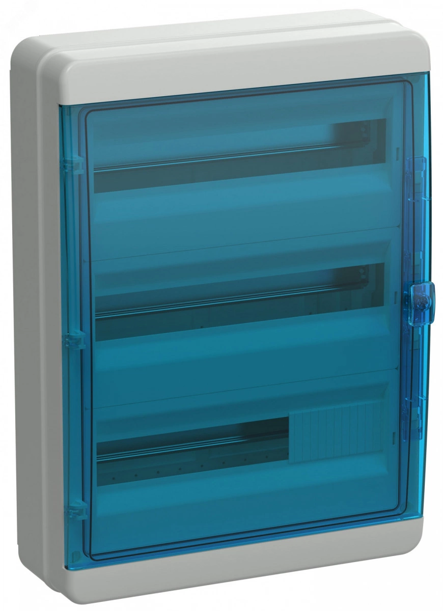 Корпус пластиковый навесной на 54 модуля КМПн-54 IP65 TEKFOR синяя прозрачная дверь