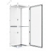 Сварной окрашенный каркас, изготовленный из цельнокатаных профилей, с монтажными отверстиями, выполненными с унифицированным шагом, толщина 1.5 мм, потолочная панель из листовой стали с контуром уплотнения, толщина 1.4 мм, рым-болты для транспортировки - 4 штуки, задняя стенка с контуром уплотнения из листовой стали, толщина 1.4 мм, дверь цельнометаллическая из листовой стали, толщина 2.0 мм, рейка монтажная основания шкафа - 2 штуки, замок поворотный с запиранием на четыре точки, петли скрытые, открывание двери на угол не менее 160С, петли наружные, открывание двери на угол не менее 180С, нижнее окрашенное съёмное основание с контуром уплотнения, с оцинкованными съёмными панелями ввода со вспененной полиуретановой лентой ПСУЛ для герметизации ввода проводников, вариант окрашивания, серая шагрень RAL7035, Степень защиты IP55.