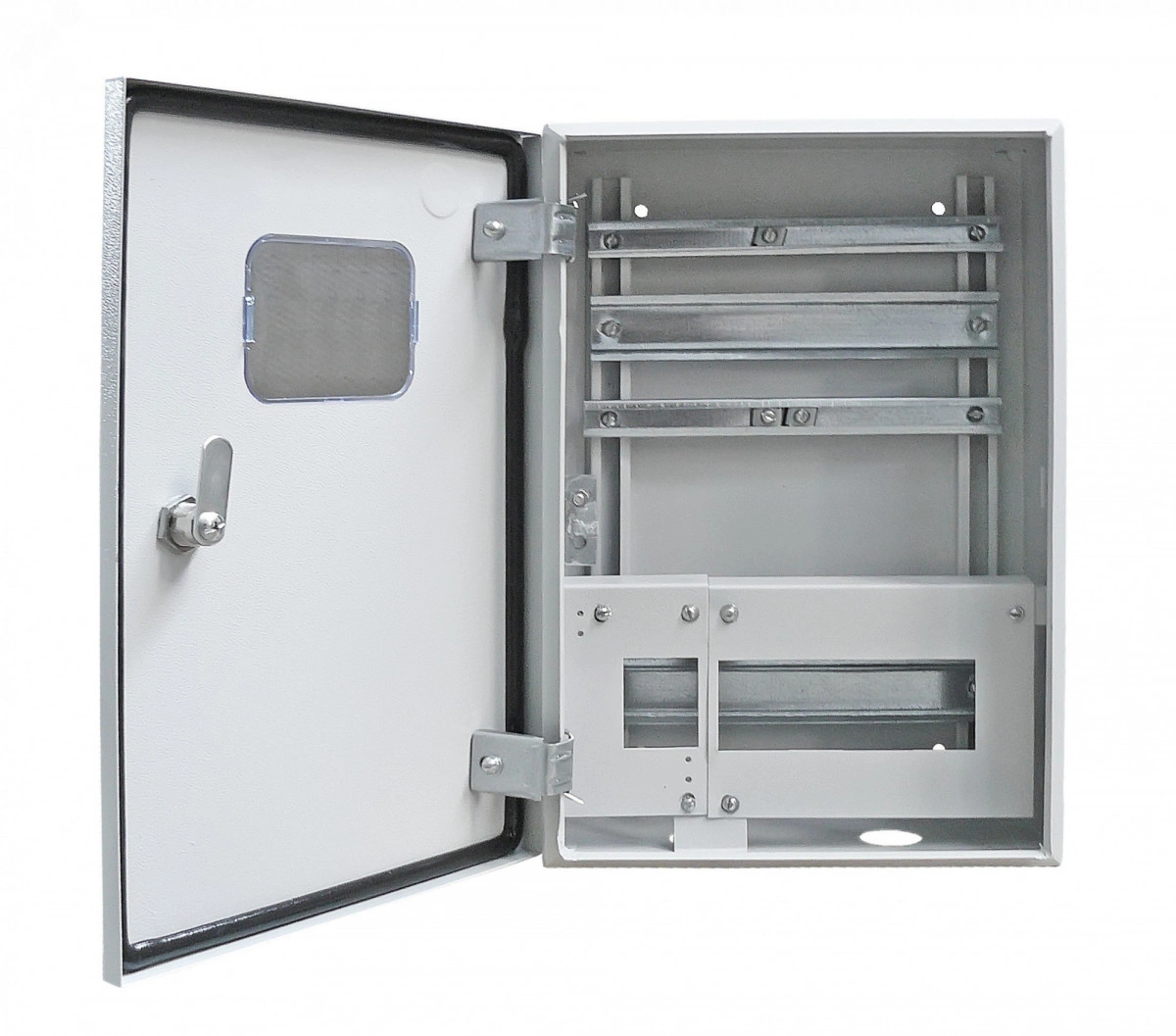 Щиток навесной (коттеджный) с цельнометаллической дверкой, под электронный счетчик с окошком, до 7+2 модулей. Корпус окрашивается порошковой краской уличного исполнения У1, дверцы корпусов могут быть как цельнометаллическими, так и спрозрачным элементом, что позволяет снимать показания со счетчика не прибегая к открыванию дверцы.Степень защиты корпусов IP 54.
