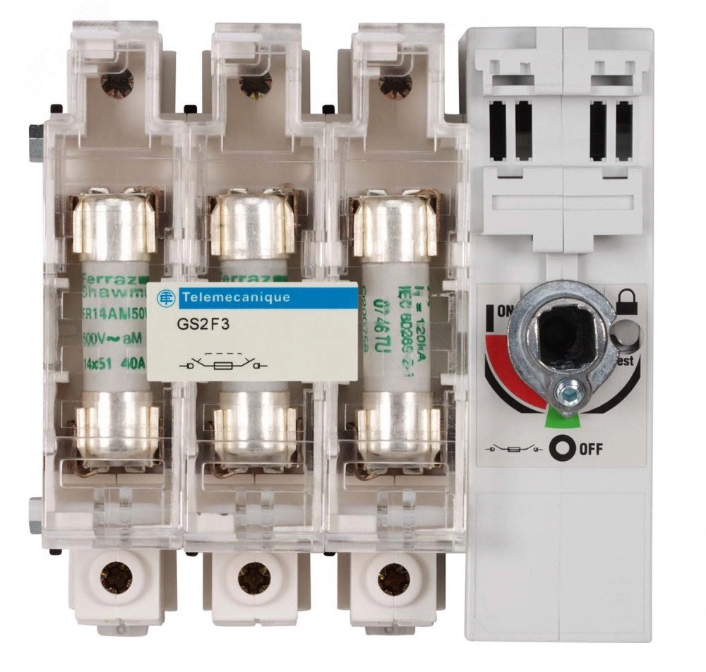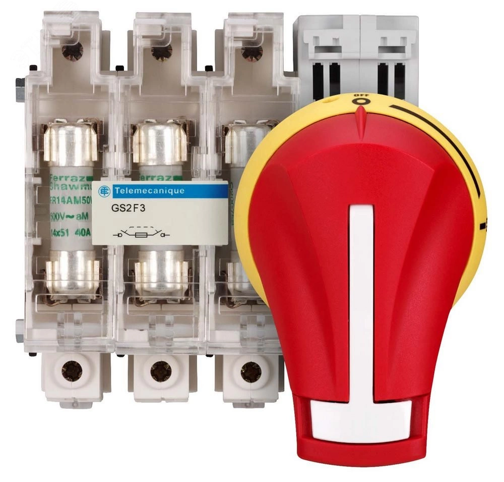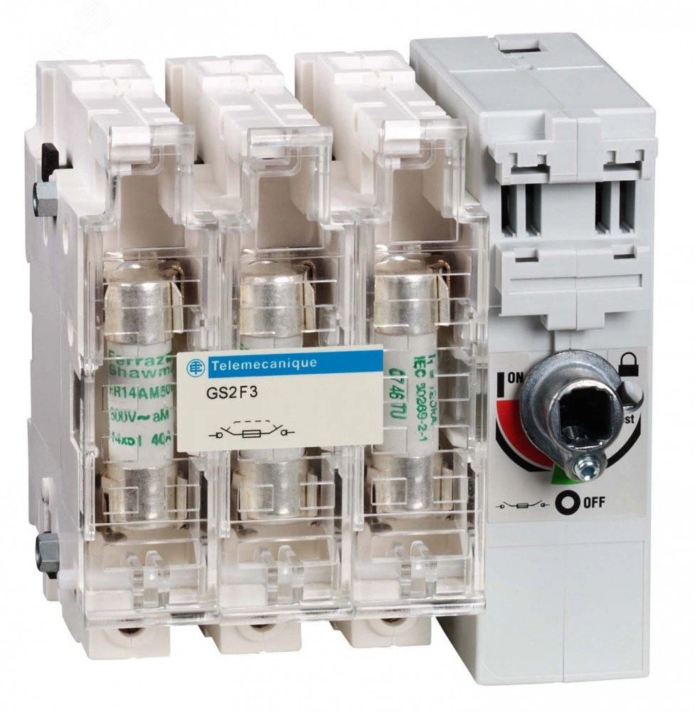 Выключатели-разъединители-предохранители TeSys GS предназначены для коммутации, защитного отключения и защиты нагрузок от сверхтока. Они могут устанавливаться, в частности, на вводе щитов управления и использоваться в качестве главных и аварийных выключателей. Аппараты обеспечивают мгновенное отключение. Имеется возможность блокировки замками и взаимной блокировки с дверью. Благодаря своей компактности аппараты могут устанавливаться внутри небольших оболочек, обеспечивая при этом выполнение функций коммутации и защиты цепей питания различного оборудования, включая генераторы или пускатели электродвигателей.