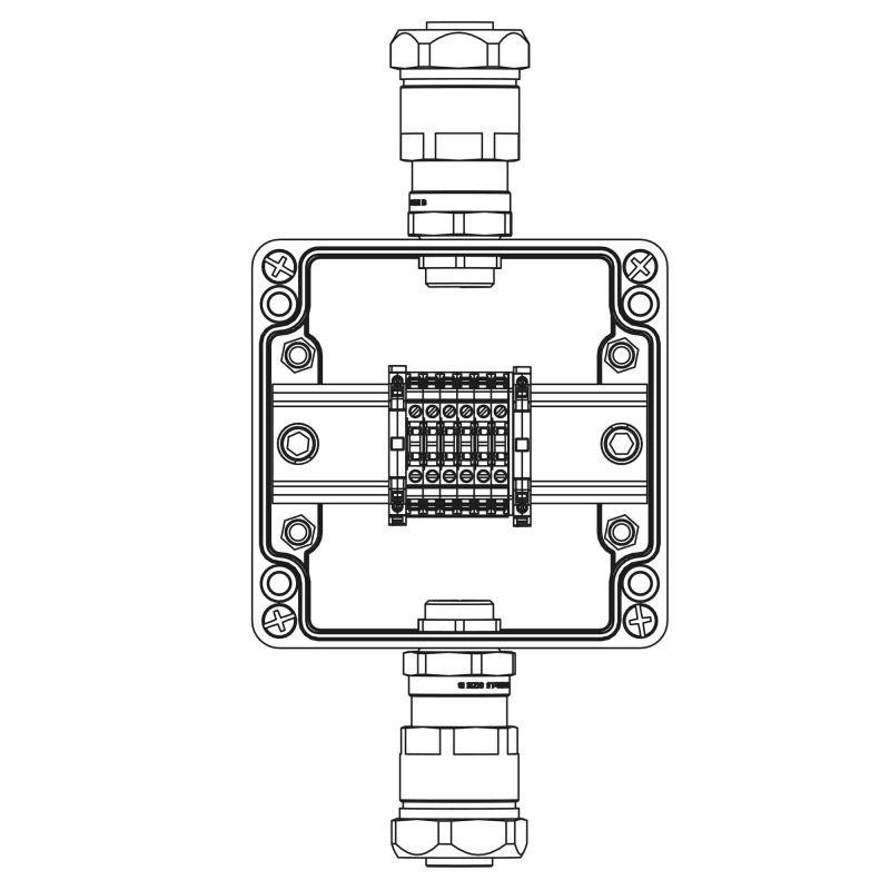 Корпус взрывозащищенный 120х120х90мм 1Exe IIC T5 Gb IP66Ex tb IIIB T95град.С Db Т5 40град.С кольца заземл. клеммы CBC.2-6шт ток А вводы сторона А: взрывозащ. кабел. ввод ANP под небронир. кабель в металлорукаве M2 GRP DKC 1231.031.19.02G