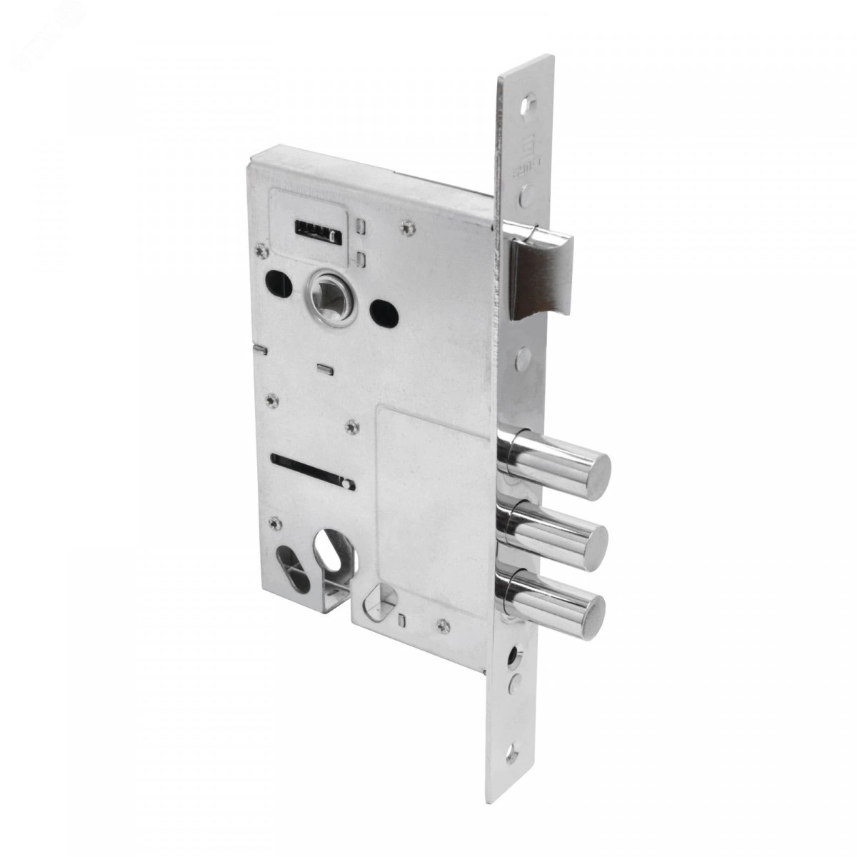 БУЛАТ ЗВ4-3(14).60.85.08 хром, без ручек, без ц/механизма Корпус замка для металлических дверей (30). Корпус врезного цилиндрового замка Булат с тремя ригелями и защелкой предназначен для установки во входные и технические металлические двери. Стальной оцинкованный корпус. Универсальная реверсивная защелка, подходит для левых и правых дверей. Отверстия под стяжные винты. Бэксет - 60 мм. Выход ригелей- 26 мм. Диаметр ригелей -14 мм. Открывание-2 полуоборота. В комплект входят - крепежная фурнитура. Цвет лицевой планки - хром.