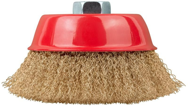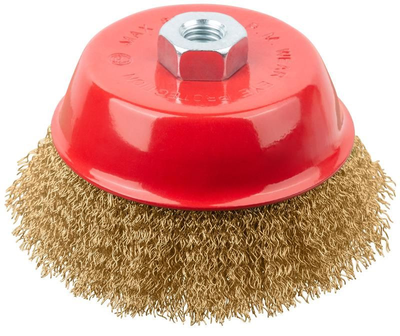 Полное описание: Корщетка-чашка гайка М14 стальная латунированная волнистая проволока 125мм FIT 39272
