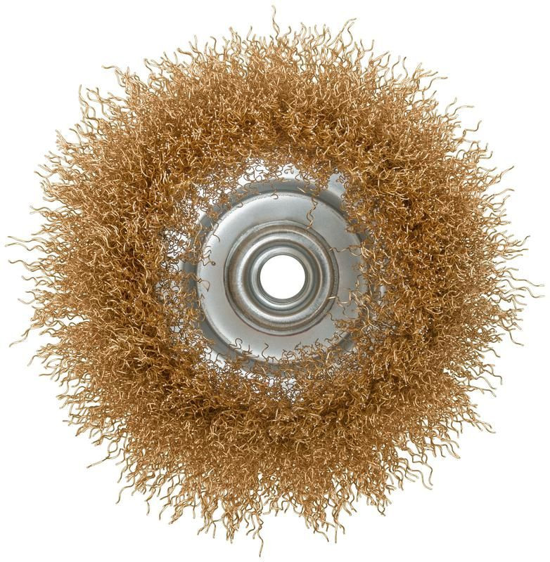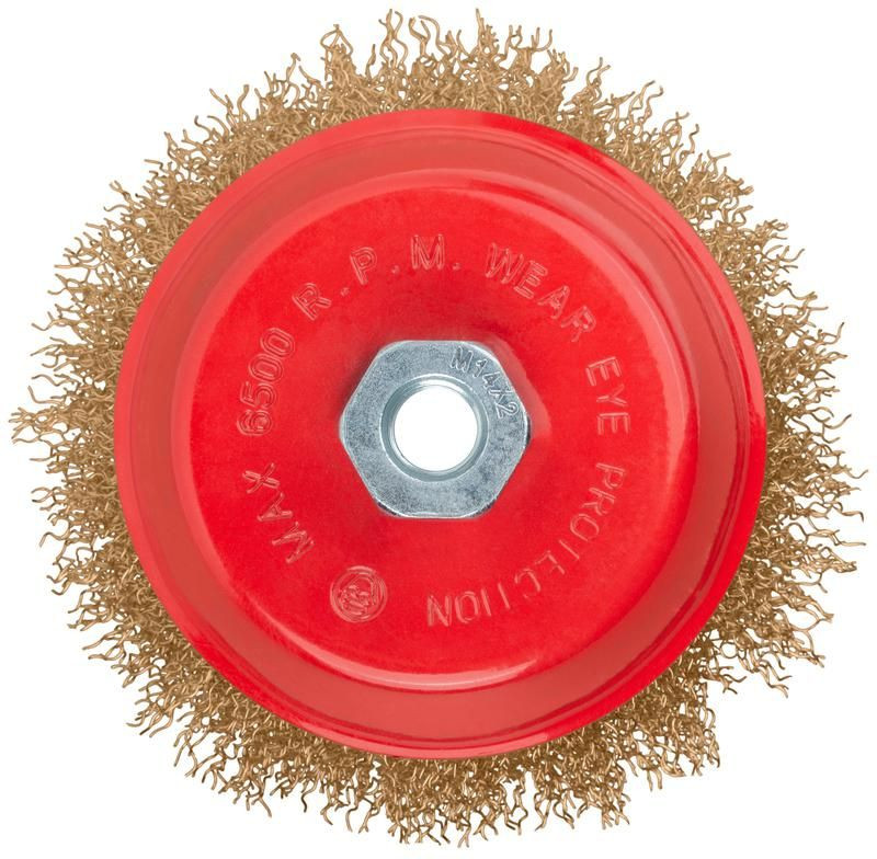 Корщетка-чашка гайка М14 стальная латунированная волнистая проволока 125мм FIT 39272
