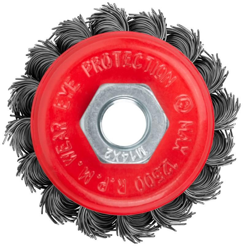 Корщетка-колесо с наклоном гайка М14 стальная витая проволока 100мм FIT 39114