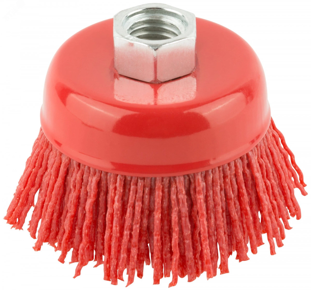 Тип «чашка». Нейлоновая. Для УШМ. Гайка М14. Для браширования древесины, удаления заусенцев, загрязнений и полировальных работ по дереву, пластику, стали и цветным металлам. Материал - нейлон, алюминий-оксидный абразив, основа из инструментальной стали. Упаковка - картонная коробка.