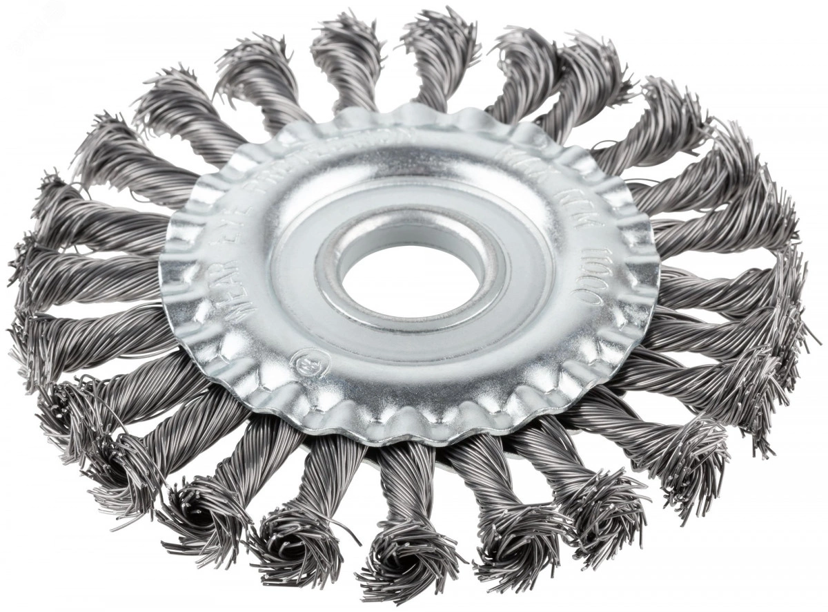 Корщетка-колесо, посадочный диаметр 22,2 мм, стальная витая проволока 125 мм, блистер