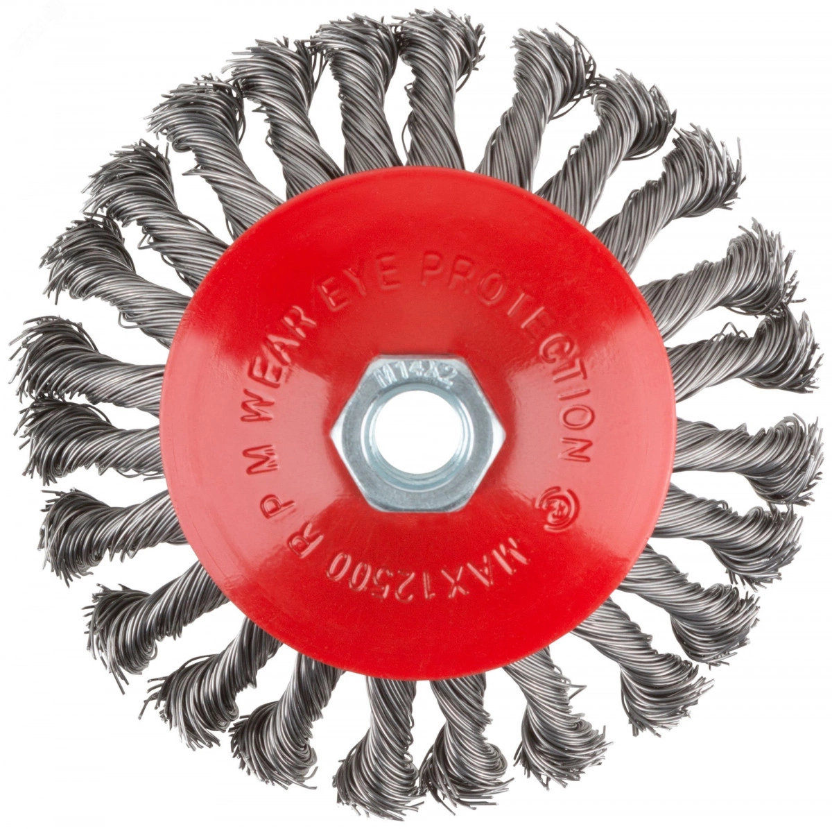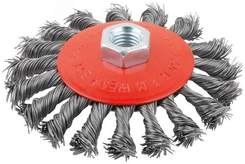 Корщетка-колесо с наклоном, гайка М14, стальная витая проволока 125 мм