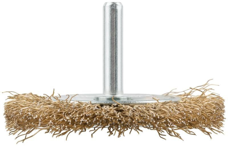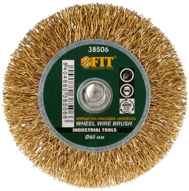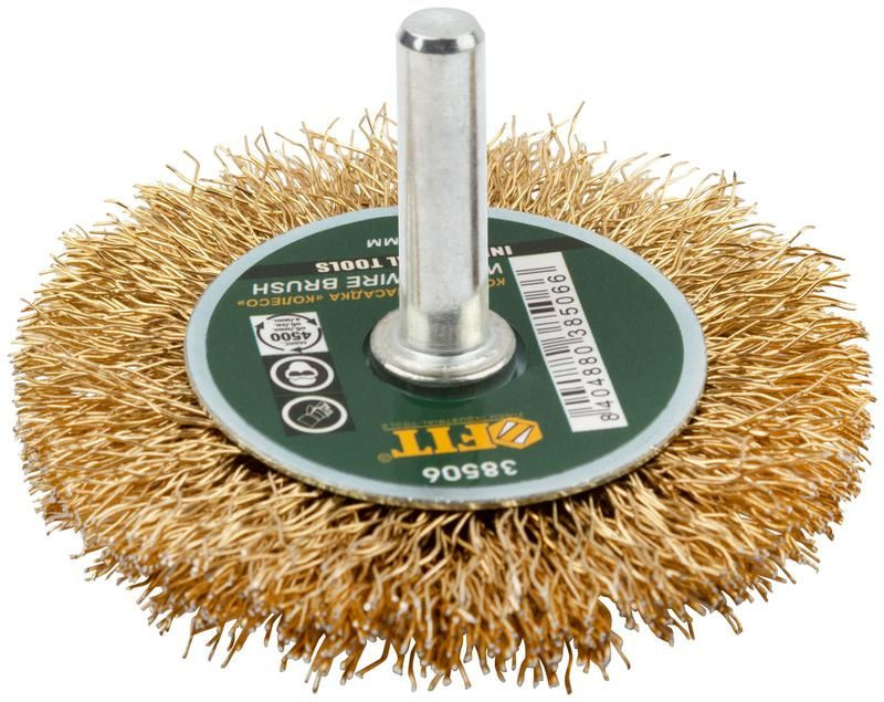 Корщетка-колесо со штифтом стальная латунированная волнистая проволока 60мм FIT 38506